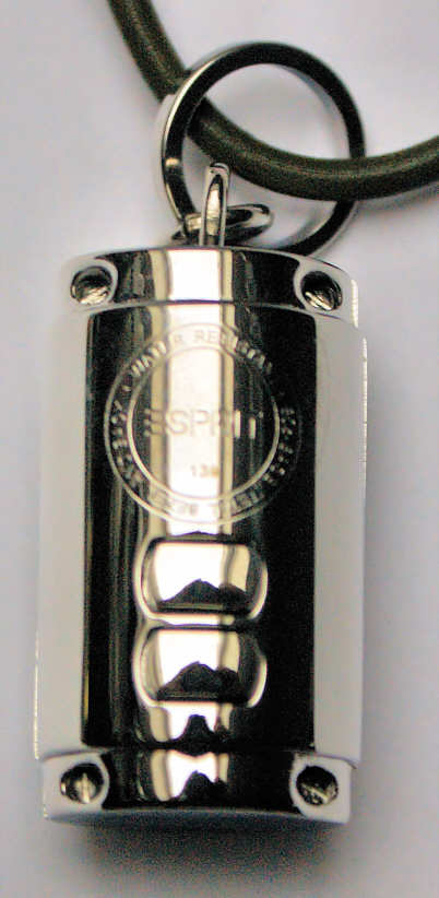 Dies sind zwei Esprit Damen Schmuckuhren, die als Anhänger an einem Lederband oder einer Halskette getragen werden. Beschriftet vorn:”Esprit”, hinten:”Esprit, 139, Water Resistant, 805-Base Metal Bezel and Back” .