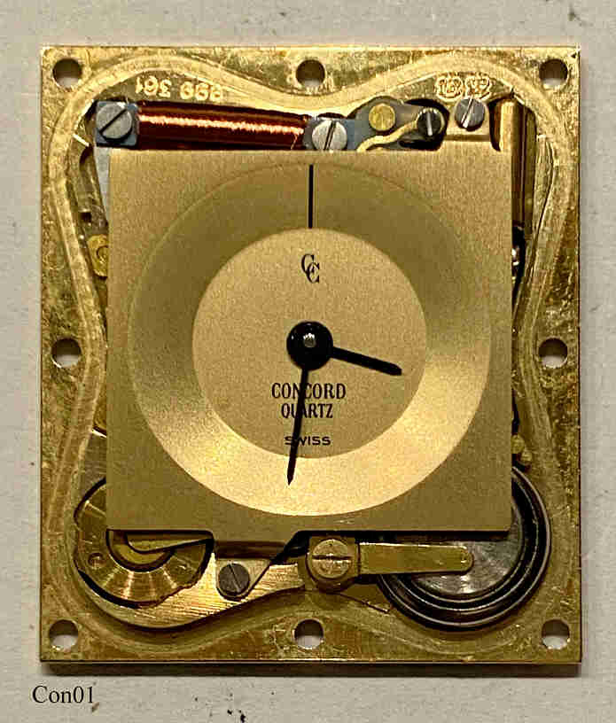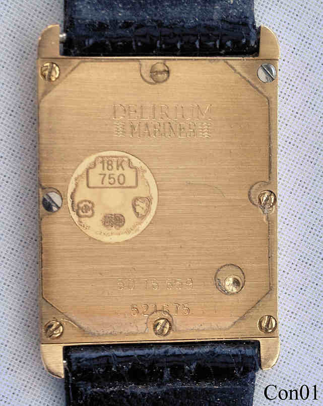 Eine Concord Delirium Mariner, eine der flachsten Armbanduhren der Welt, Dicke 2,7 mm. Gehäuse 18K Gold. Beschriftet vorn: “Concord, Quartz, Swiss”, hinten: ”Concord, Mariner, 18K, 750, 5076659, 521675”, innen: “999.361”. Werk ETA 999.361.