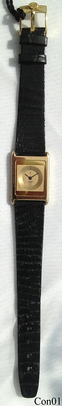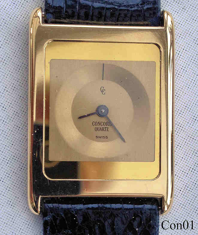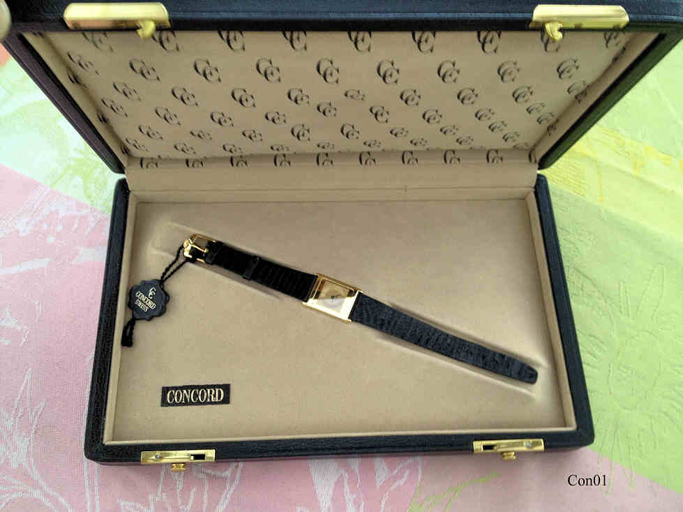 A Concord Delirium Mariner, one of the slimmest watches worldwide, only 2,7 mm thick. Case 18K gold. Signed front: “Concord, Quartz, Swiss”, back: ”Concord, Mariner, 18K, 750, 5076659, 521675”, inside: “999.361” . Movement ETA 999.361.