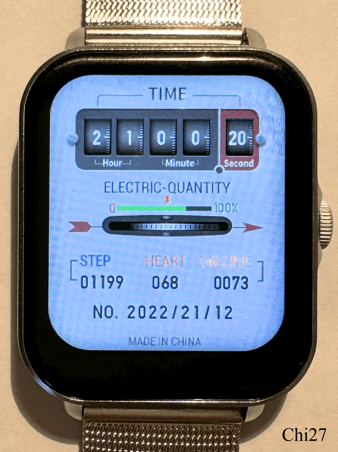 Eine Smart Watch aus China zur Bluetooth Koppelung mit IOS und Android Handys. Es handelt sich um eine Smart Watch mit einem ungewöhnlichen Zifferblatt in Form eines Stromzählers. Das Gehäuse ist in Kunststoff / Edelstahl gearbeitet und macht einen stabilen Eindruck. Die Bedienung erfolgt über den Touch Screen und bietet verschiedene Funktionen, wie in der Animation zu sehen ist.