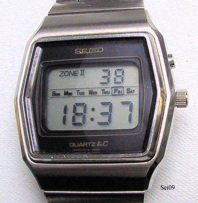 Dies ist eine Seiko Quartz LLC, eine LCD Digitaluhr mit zweiter Zeitzone und Datum. Beschriftung vorn:” SEIKO, Quartz, Japan 0139-5010 R“, hinten: “Seiko, Water Resistant, Stainless Steel, 0139-5019, 711873”, innen: “ Seiko, 0139A, Japan”. Edelstahlgehäuse mit Edelstahl Boden und original Metall- Gliederarmband mit SEIKO Schließe.