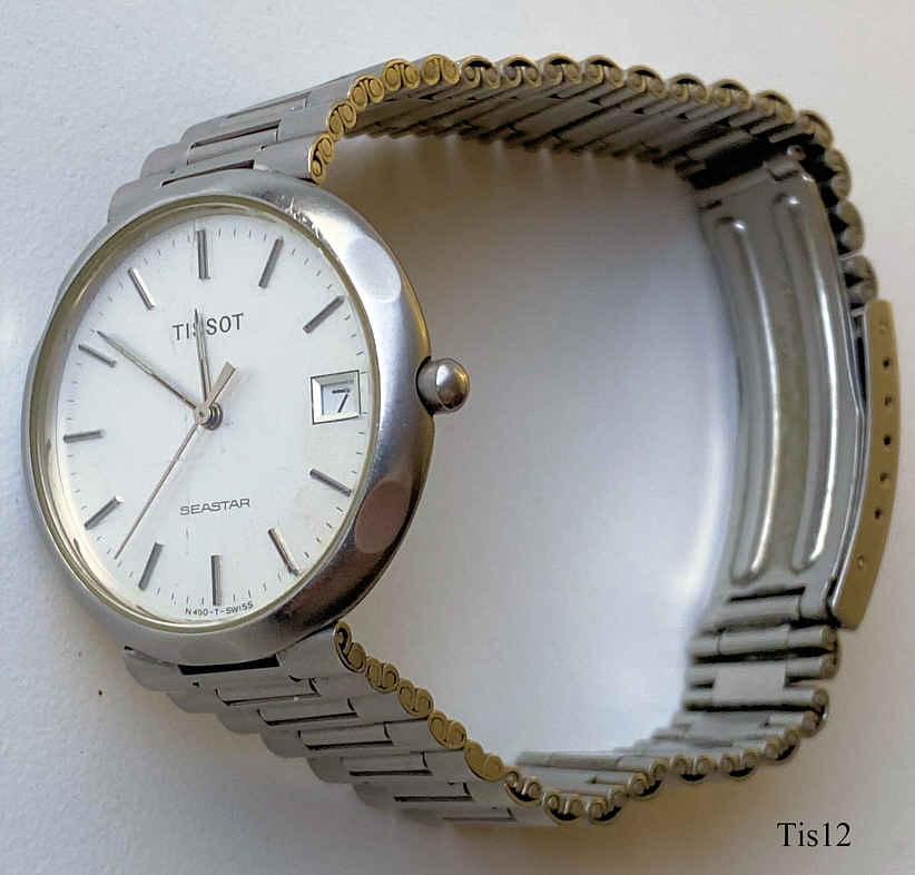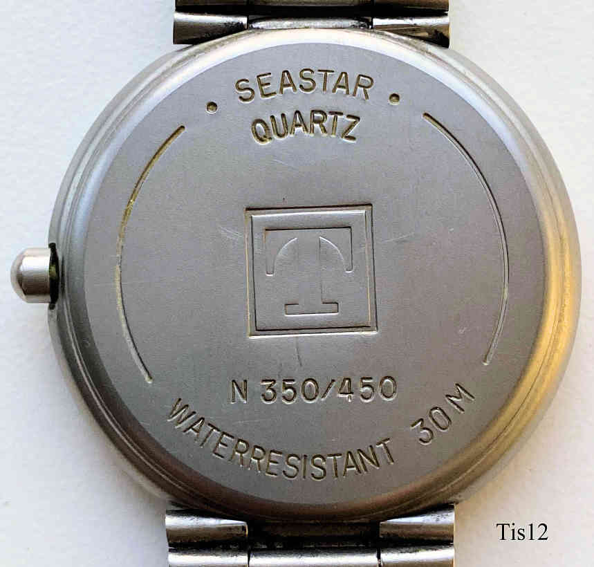 A Tissot Seastar Quartz watch with Titanium case and back, Caliber ETA 955.112, Date at 3. Signed front: “Tissot, Seastar, Made in Swiss”, back: “Seastar, Quartz, Water Resistant 30 M, N 350/450”,Stainless steel band.