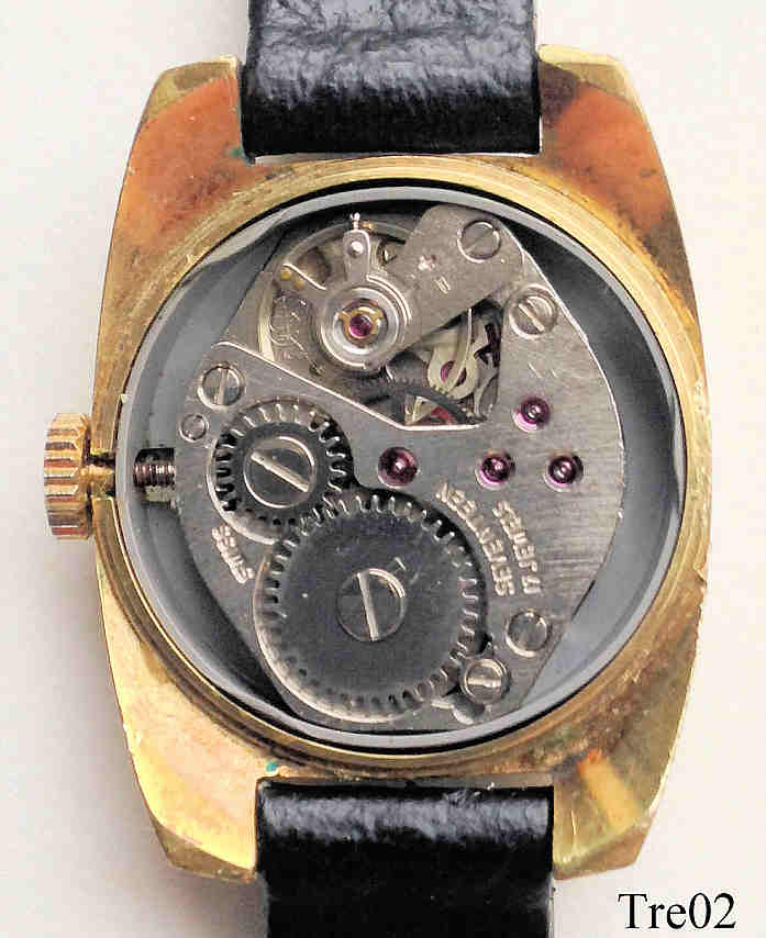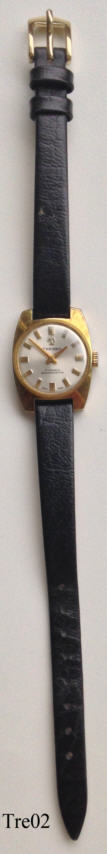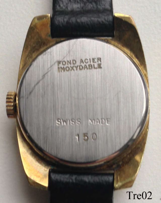 A Tressa ladies handwind watch. Signed front: “Tressa, 17 Jewels, Shockprotected, Swiss Made”,back: “Fond Acier, inoxydable, Swiss Made, 150”, inside:”Seventeen 17 Jewels, FHF 69-21”, black leather band.
